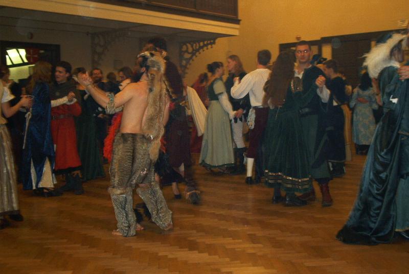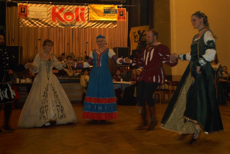 Již tradičně se stal prvním šermířským plesem nového roku Kolín. Okolo šesté hodiny se začali na Zámeckou trousit první tancechtiví návštěvníci a postupně jich sál a přilehlé prostory zaplnilo na čtyři sta. Páni z Kolína, jak jsme ostatně očekávali, zvládli celou přípravu a organizaci opět velmi dobře, přestože celý den se na sále střídali jakési schůze a ještě těsně před šestou končili taneční. Komu čest, tomu čest, Míra HORÁČEK, takto vedoucí pořádající skupiny, si mohl vydechnout až dlouho po půlnoci. Sál byl vyzdoben antickými zbrojemi a ve stejném duchu proběhl i oficiální zahajovací program. Páni z Kolína rozšířili svůj záběr i na toto období a mimochodem hledají další partnery ke spolupráci. Dokonce ve dvou polohách, jednak pro vskutku vážné a dobově přesvědčivé rekonstrukce bojů a šarvátek mezi Římany a "barbary" (hledají se Keltové, Slované, Germáni), jednak pro lehčí žánr na motivy Asterixe.