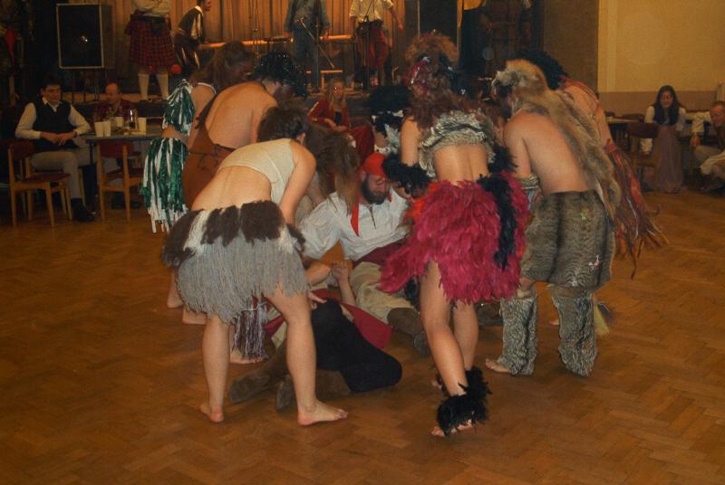 Úvodní vystoupení patřilo taneční skupině ALDEBARAN, která předvedla několik renesančních tanců. Tato skupina následně během večera vystoupila ještě několikrát s tanci skotskými, orientálním programem a především s exotickým a kostýmově zběsilým číslem afrických lidojedů. Jafyho málem sežrali, a že to je nějaká porce masíčka.